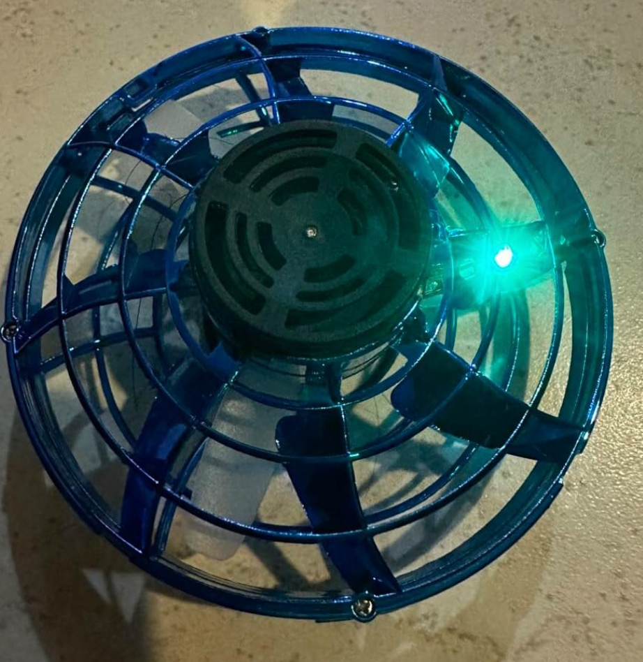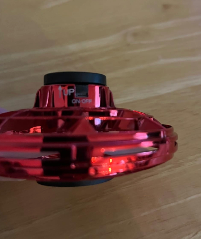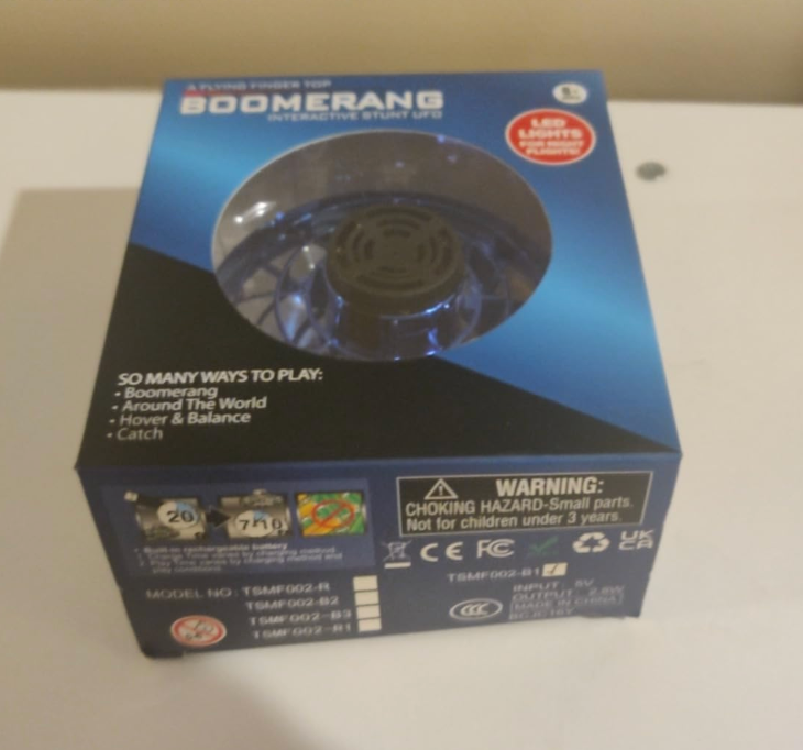 ¡Es muy fácil! Lo enciendes con el botón, lo agitas un poco para que se activen los motores y las luces, y lo lanzas suavemente. Dependiendo del ángulo en que lo lances, ¡volverá a ti como un boomerang mágico!